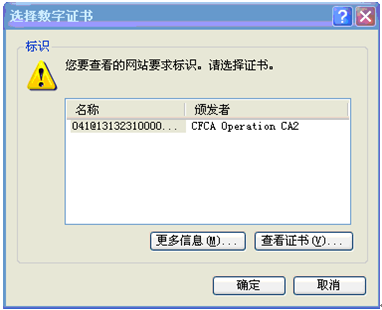 將USBKEY插入電腦后提示選擇相應(yīng)數(shù)字證書:
